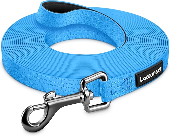 ☔ 𝐖𝐚𝐭𝐞𝐫𝐩𝐫𝐨𝐨𝐟 & 𝐒𝐭𝐮𝐫𝐝𝐲, 𝐄𝐚𝐬𝐲 𝐭𝐨 𝐂𝐥𝐞𝐚𝐧: The Looxmeer dog training lead is made of an internal polyester layer coated with two layers of PVC, ensuring it is waterproof, dustproof, easy to clean, and strong enough to withstand your pet’s pulling force up to 250kg. Perfect for controlling dogs of all sizes in anywhere, such as parks, mountains, beaches, or riversides.